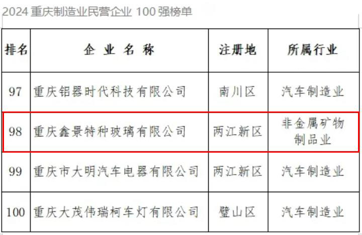 我公司實(shí)力上榜,榮登2024“重慶制造業(yè)民營企業(yè)100強(qiáng)榜單”。